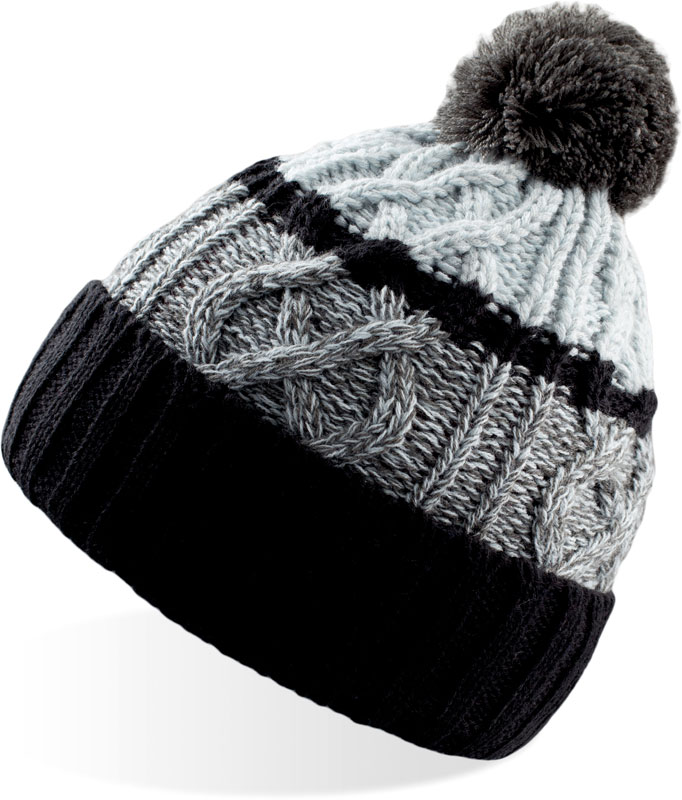 Strickmütze mit Pompon „Cool“, Breiter Umschlag, mit Pompon, 2×2 Rippstrick, TearAway Label, Handwäsche, nicht bügeln, nicht trocknergeeignet, nicht chemisch reinigen, Material: 110g, 100% Polyacryl, Größe: onesize