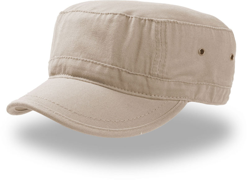Military Kappe, Seitliche Luftlöcher, geschlossene Rückseite ohne Verschluss, TearAway Label, Handwäsche, nicht bügeln, nicht trocknergeeignet, nicht chemisch reinigen, Material: 100% gewaschene Chino Baumwolle, Größen: S/M,L/XL