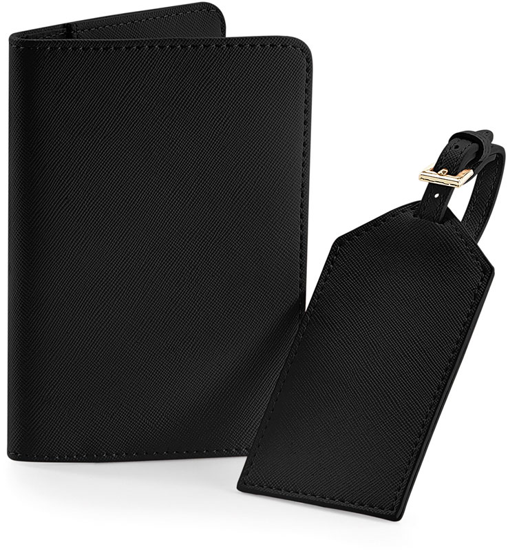 Reise Set „Boutique“, Höchglänzende goldene Metallverzierungen, weiches Innenfutter, TearAway Label, 2-teiliges Set, Etui Maße: 10,5×14,5cm, Gepackanhänger Maße: 6×11,5cm, nur mit einem Schwamm reinigen, nicht waschen, Material: 108g, 100% PU Lederoptik, Größe: onesize