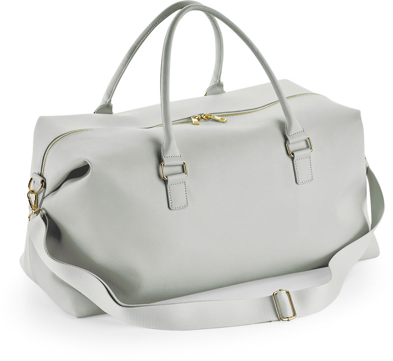 Reisetasche „Boutique“, 2 kurze Tragegriffe, abnehmbarer längenverstellbarer Schultergurt, Tragegrifflänge: 57cm, alternativer Schultergurt separat erhältlich (Artikel 52.0765), kleine Standfüße, extra langer Reißverschluss am Hauptfach, Innentasche mit Reißverschluss, Soft-Touch-Futter, Veredelungszugang im Futter, kann über die Schulter oder in der Hand getragen werden, TearAway Label, Fassungsvermögen: 25l, Maße: 53x26x24cm, nur mit einem Schwamm reinigen, nicht waschen, Material: 1.450g, 100% PU Lederoptik, Futter: 100% Polyester, Größe: onesize
