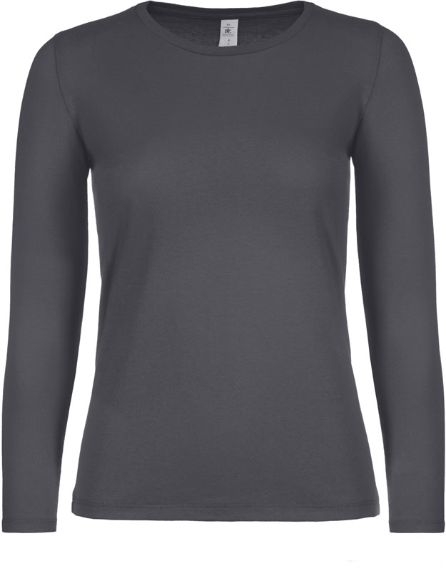 Damen T-Shirt langarm, Feminine Passform, schmaler Rundhalsausschnitt in Rippstrick, Satin-Label, 40° waschbar, trocknergeeignet, Material: 145g/m², 100% einlaufvorbehandelte ringgesponnene Baumwolle, Single Jersey, sport grey: 85% Baumwolle, 15% Viskose, Größen: XS,S,M,L,XL,XXL,3XL