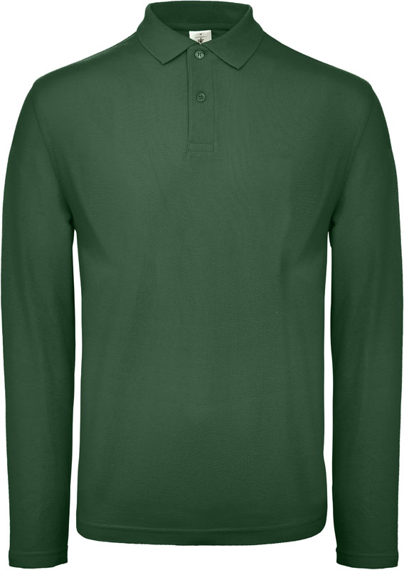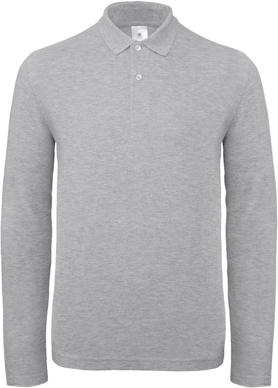 Herren Piqué Polo langarm, Kragen in flachem 1×1 Rippstrick, 2er Knopfleiste verstärkt mit Knöpfen Ton-in-Ton, Nackenband, 40° waschbar, trocknergeeignet, Material: 180g/m², 100% einlaufvorbehandelte ringgesponnene Baumwolle, heather grey: 90% Baumwolle, 10% Viskose, Größen: XS,S,M,L,XL,XXL,3XL,4XL