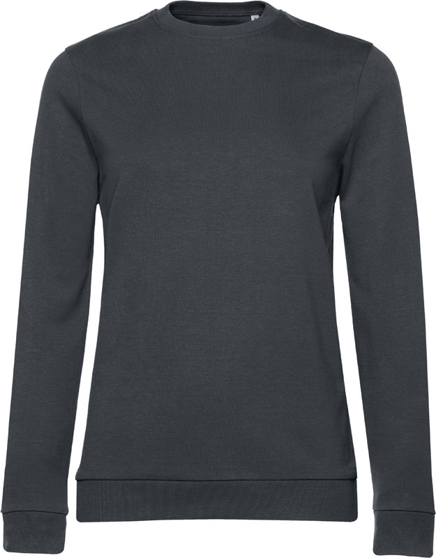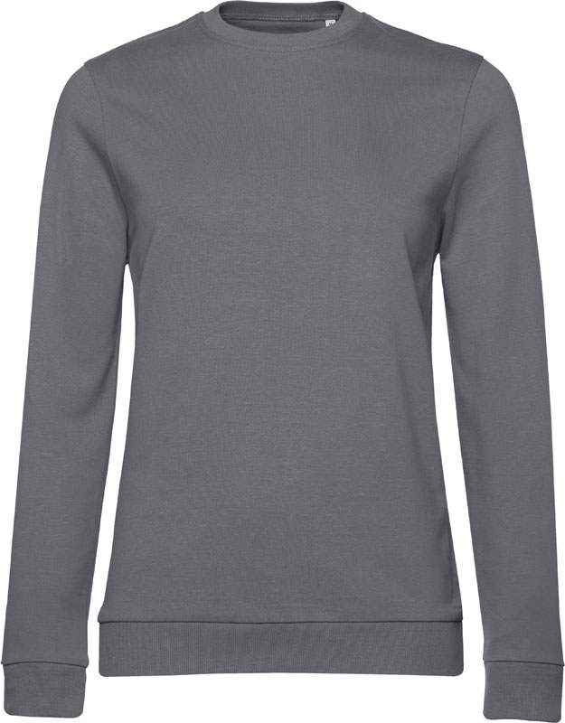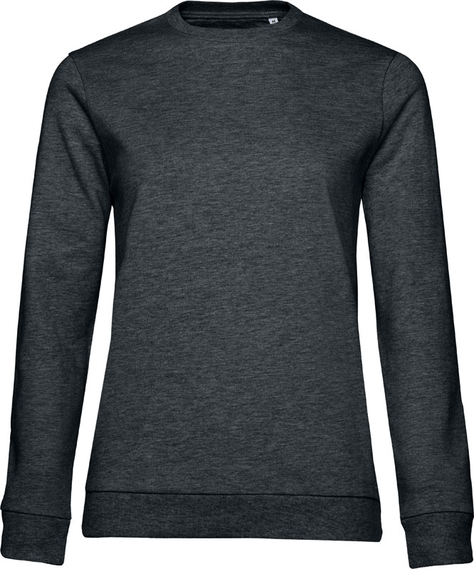 Damen Sweater, Feminine Passform, Single Jersey Halbmond am inneren Rückenteil, neutrales Größenlabel, 30° waschbar, nicht trocknergeeignet, Material: 280g/m², 80% einlaufvorbehandelte ringgesponnene Baumwolle, 20% Polyester, heather grey: 92% Baumwolle, 8% Viskose, andere heather Farben: 60% Baumwolle, 40% Polyester, French Terry (innen nicht angeraut), Größen: XS,S,M,L,XL,XXL,3XL