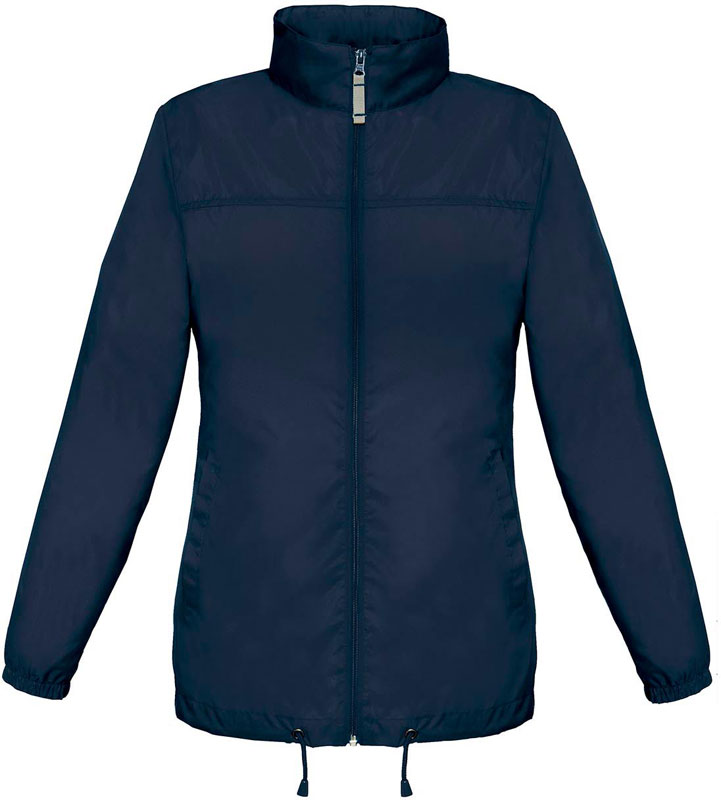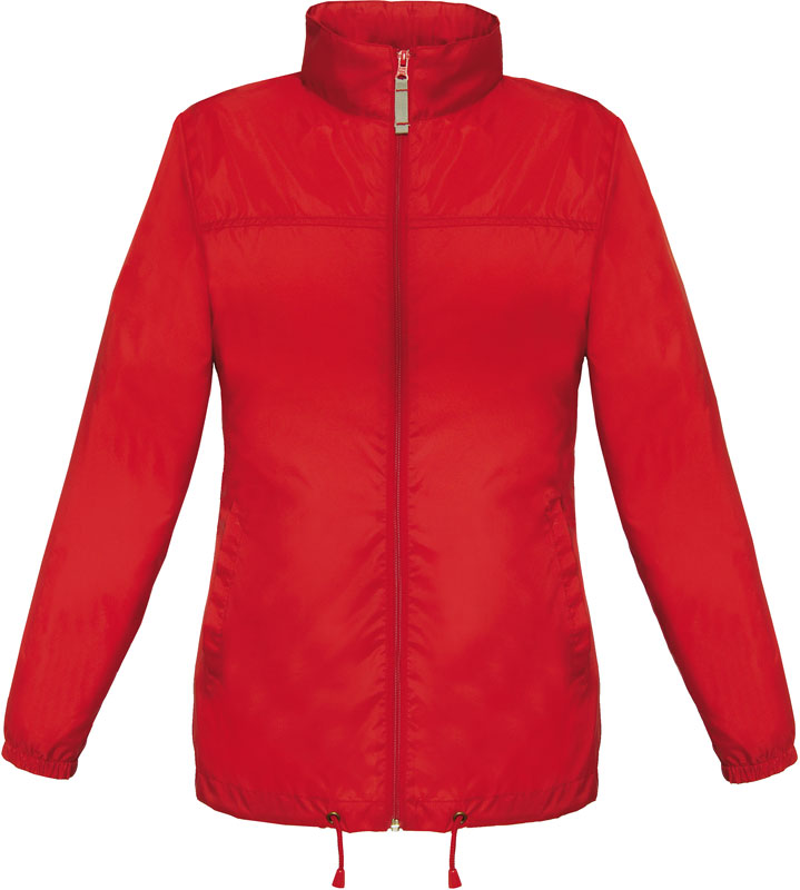Ungefütterter Damen Windbreaker, Taillierter Schnitt, wasserabweisend, Kragen mit integrierter Kapuze, verstellbarer Kordelzug am Bund, verdeckter Reißverschluss, 2 Fronttaschen, Falten und Verstauen der Jacke nach dem K-Way-System in einer Tasche mit doppeltem Reißverschluss, 30° waschbar, nicht bügeln, nicht trocknergeeignet, Material: 100% Nylon Taffeta®, Größen: XS,S,M,L,XL,XXL
