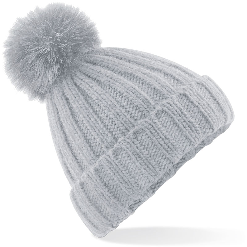 Strickmütze mit Pompon, Unisex, luxuriöser robuster Rippenstrick, einfarbiger Pompon, Umschlag, mit anderen austauschbaren Pop Pom-Produkten kombinierbar, abnehmbarer, luxuriöser Kunstfell-Pompon, TearAway Label, Handwäsche, nicht bügeln, nicht trocknergeeignet, nicht chemisch reinigen, Material: 100% Polyacryl, Größe: onesize