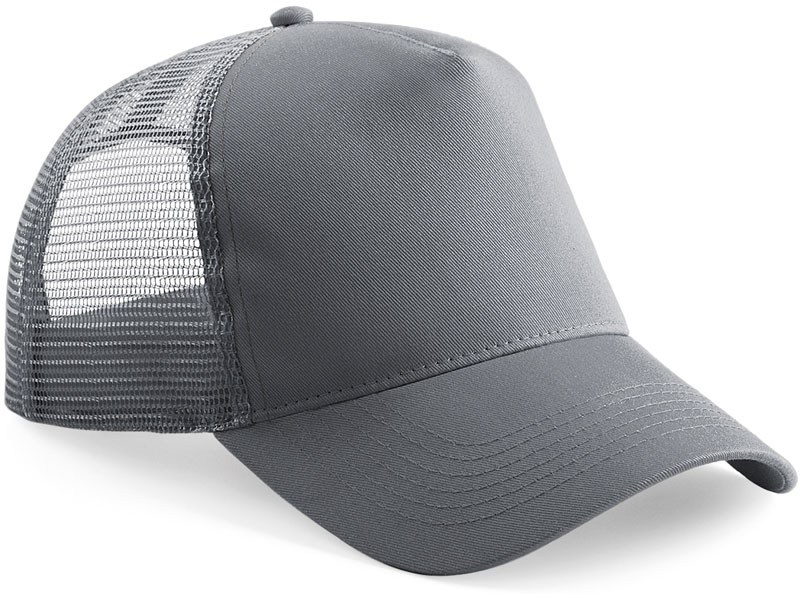5 Panel Trucker Kappe, Vorgeformter Schirm, Vintage Style Snapback-Verschluss, nur mit einem Schwamm reinigen, nicht waschen, Material: Schild und Frontpanels: 100% Baumwolle, hintere Panele: 100% Polyester Netz, Größe: onesize