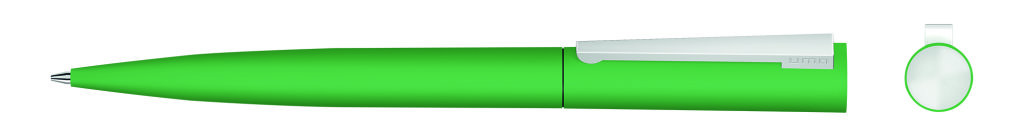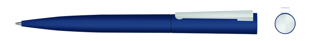 Metall-Drehkugelschreiber mit Softtouch-Gehäuse, gefederter Metallclip und Stopfen matt verchromt. Hier geht´s zum [[https://www.youtube.com/watch?v=7uJLytypJWI|Video]]. Minenfarbe: blau