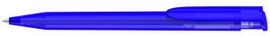 Druckkugelschreiber mit gedeckt glänzendem Gehäuse, Metalldrücker und schwerer Metallspitze glanzverchromt. Minenfarbe: blau