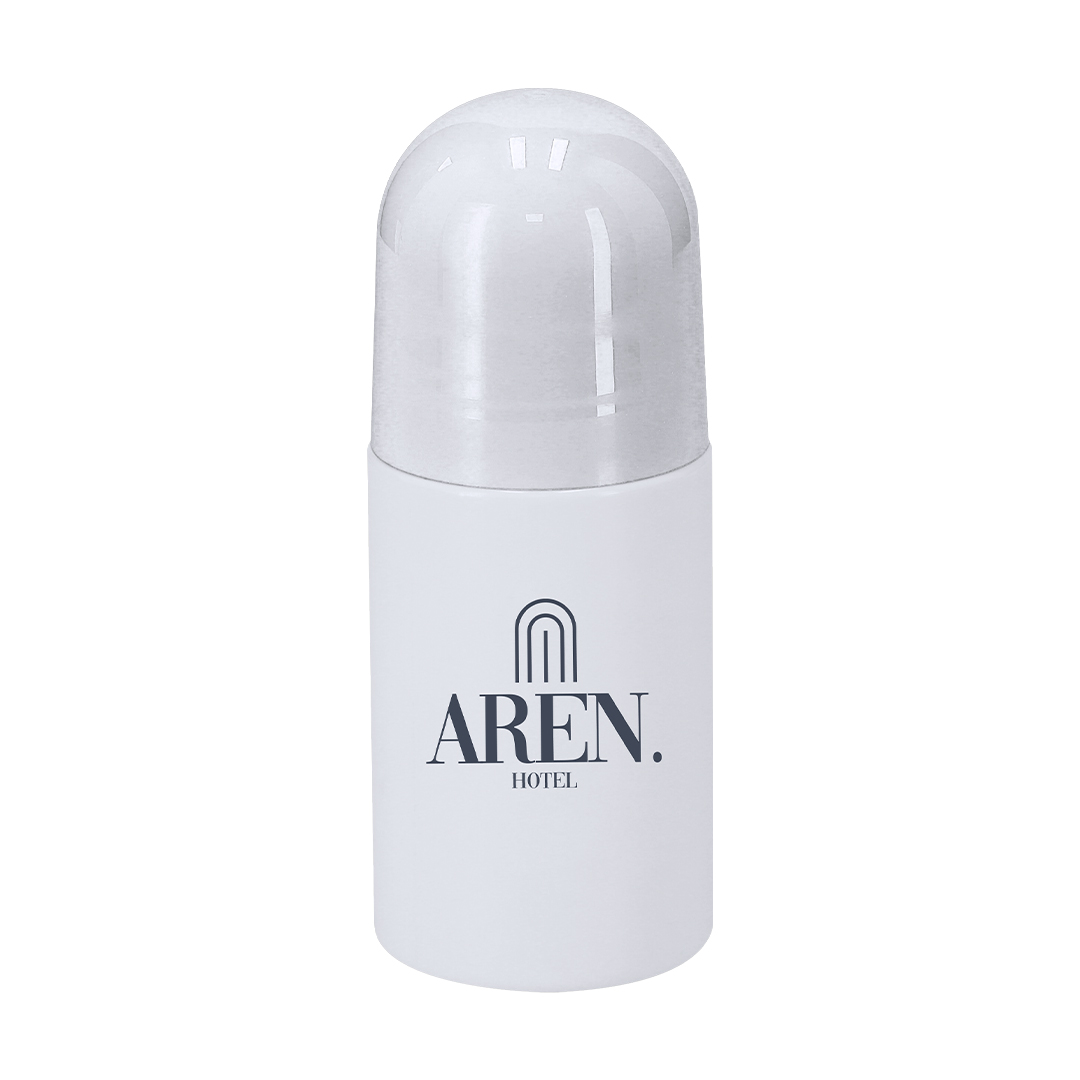 Deo mit Roll-On-System mit einem Fassungsvermögen von 60 ml. Hartes PP-Gehäuse und Schraubverschluss. Weißer Moschusduft, Unisex-Duft. Dermatologisch getestet.