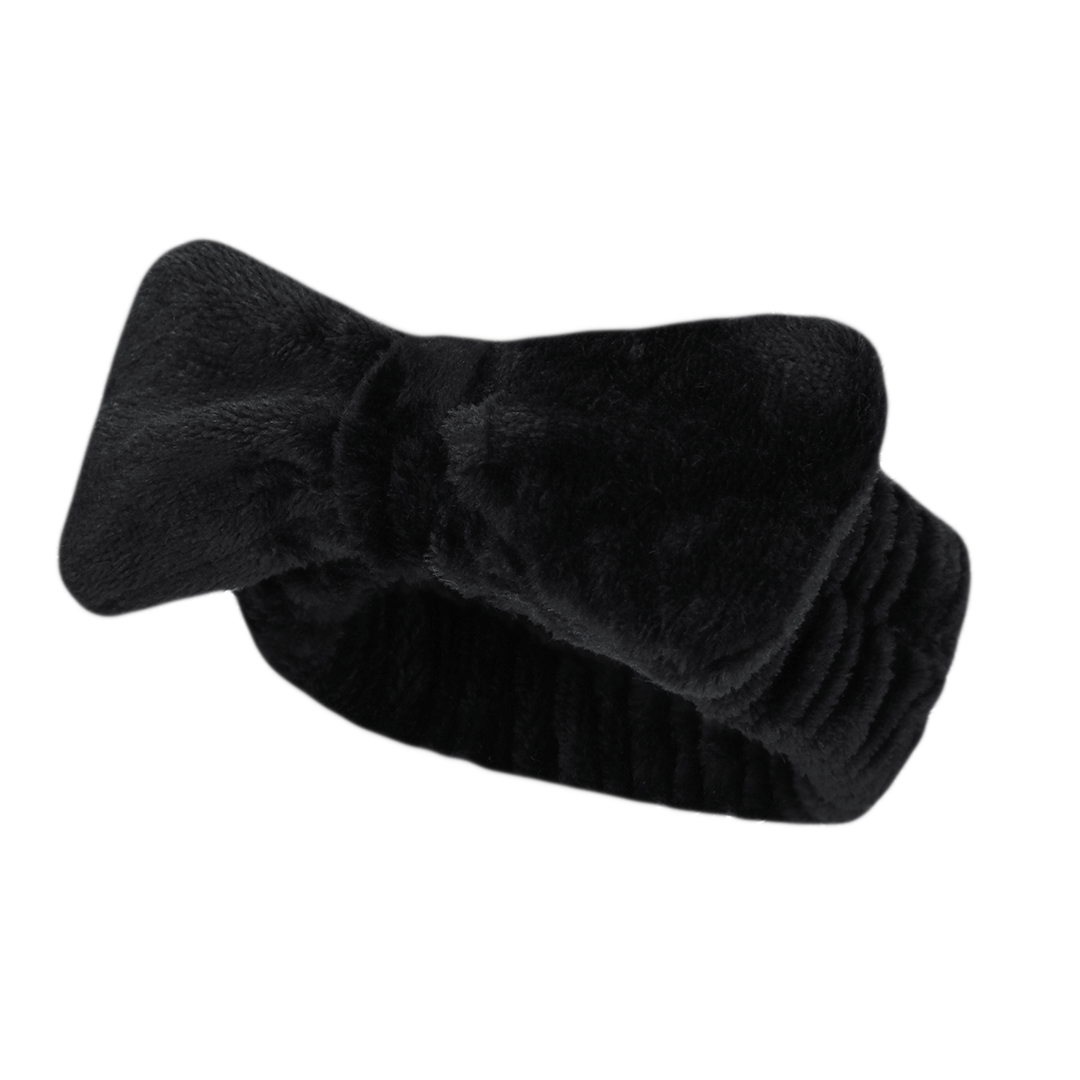 Haarband in Form eines Bandes, geschmückt mit einer eleganten Schleife. Hergestellt aus weichem und elastischem Polyester, ideal zur Vereinfachung der facialen Reinigungsroutine.