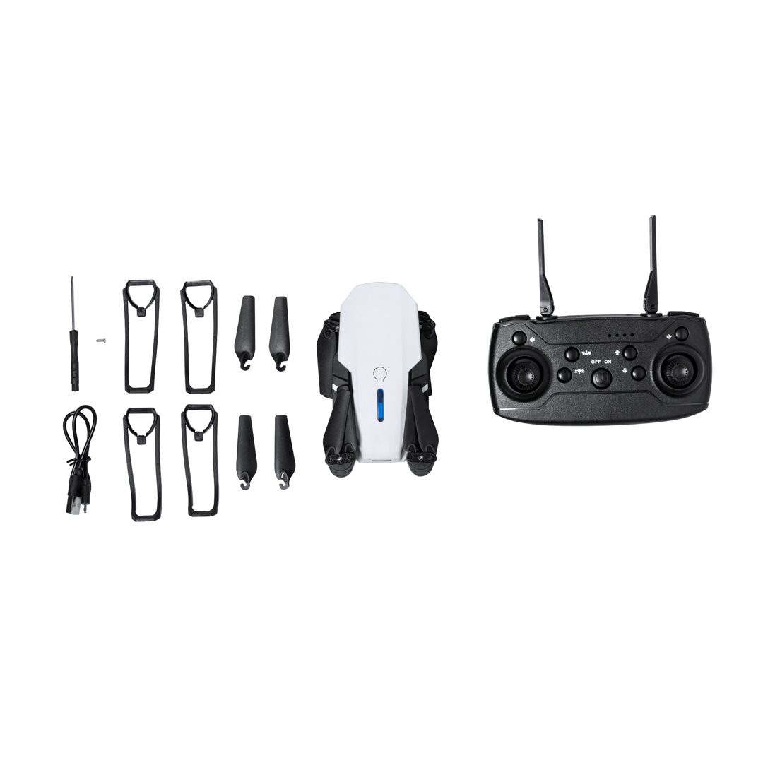 Drohne aus widerstandsfähigem ABS-Material. Mit Wi-Fi-Konnektivität, Videoaufnahme-Modus und Fotoaufnahme. Bedienung der Drohne über ein mobiles Gerät -APP kompatibel mit iOS und Android- oder per Fernbedienung -inklusive-. Mit automatischem Flugmodus -auto hover-, der die Drohne in der Luft schweben lässt. 600-mAh-Akku, wiederaufladbar über Micro-USB-Kabel (im Lieferumfang enthalten) und Fernsteuerung mit Batteriebetrieb (3xAAA, nicht im Lieferumfang enthalten). Inklusive Ersatzteilkoffer: 4 Propeller, 4 Protektoren und Schraubendreher, mit Reißverschluss und gestanztem Schaumstoffeinsatz. Präsentiert in einer attraktiven Kraft-Design-Box, mit Bedienungsanleitung in Englisch und Spanisch.