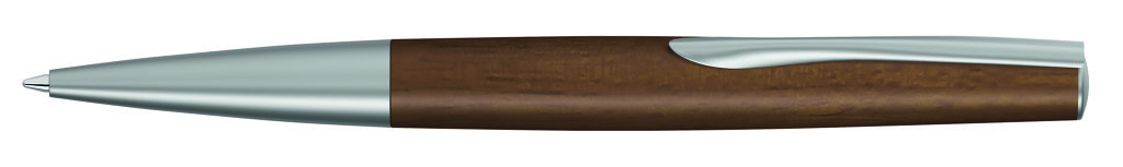 Metall-Drehkugelschreiber mit Schaft aus FSC®-zertifiziertem Walnussholz, gefederter Metallclip, Metallstopfen, schwere Metallspitze matt verchromt und Softdrehmechanik. Minenfarbe: blau
