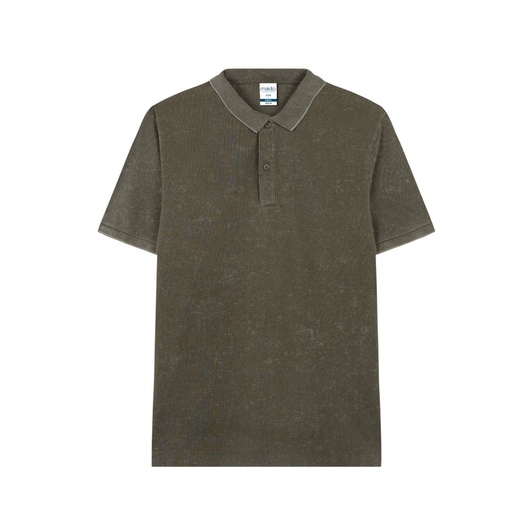 Unisex-Poloshirt mit kurzen Ärmeln und Jeans-Wasch-Effekt, der jedes Stück einzigartig und unwiederholbar macht. Elastische Kontrastdetails an Kragen und Ärmeln. Hergestellt aus 100% gekämmter Baumwolle, Ring Spun 180g/m2. Weicher Griff und moderner Schnitt. Zwei Ton-in-Ton-Knopfleisten. Doppelte Nähte am Saum und an den Ärmeln für mehr Haltbarkeit und Widerstandsfähigkeit bei intensiver Nutzung. Leicht ablösbares Etikett. Erhältlich in den Größen XS, S, M, L, XL und XXL.