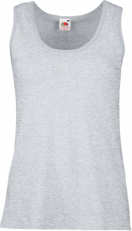 Damen Trägershirt, Taillierter längerer Schnitt, eingefasster Hals- und Armausschnitt Ton-in-Ton, Material: 165g/m², 100% Baumwolle, heather grey: 97% Baumwolle, 3% Polyester, Größen: XS,S,M,L,XL,XXL