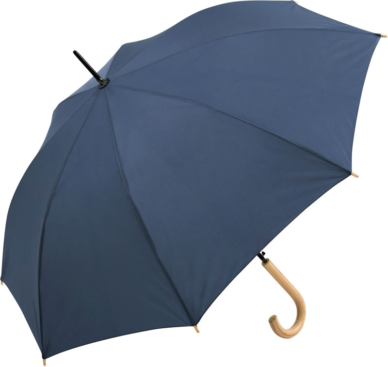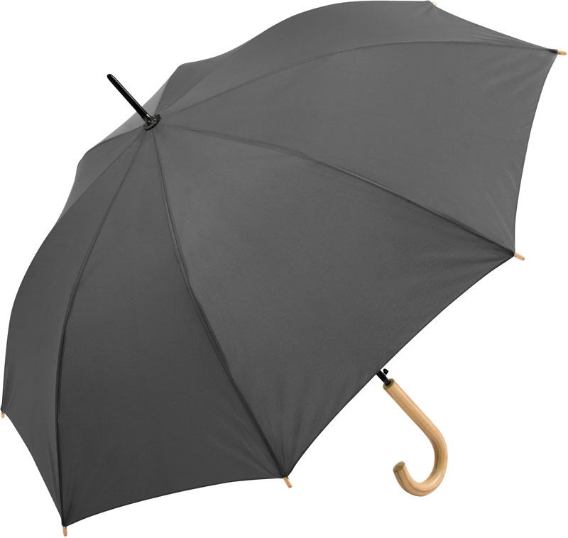 AC Stockschirm „Ökobrella“, Schwarz galvanisierter Stahlstock (höherer Korrosionsschutz), Rundhakengriff aus Echtholz, flexible Fiberglasschienen, klimaneutral, waterSAVE® Materialien werden zur Schonung der Umwelt Wasser und Energie sparend produziert, Automatik-Funktion, Windproof-System für maximale Gestell-Flexibilität bei stärkeren Windböen, 8 Keile, Echtholzspitzen, waterSAVE®-Label auf dem Schließband, Durchmesser: 100cm, geschlossene Länge: 85cm, Material: 340g, 100% Polyester Pongee (recycelt & waterSAVE®), Griff: Echtholz, Stock: Stahl, Größe: onesize