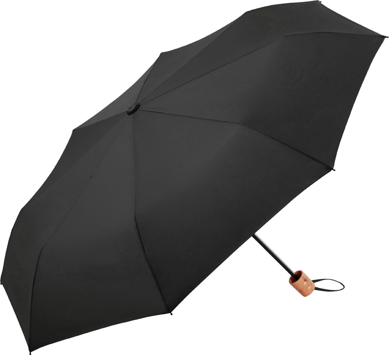 Mini Taschenschirm „Ökobrella® Shopping“, 3-teiliges Gestell, Echtholzgriff mit Trageschlaufe in Bezugsfarbe, Futteral mit Reißverschluss auch als Einkaufstasche mit Staufach für den Schirm zu verwenden, einfache Handhabung durch Sicherheitsschieber, klimaneutral, waterSAVE® Materialien werden zur Schonung der Umwelt Wasser und Energie sparend produziert, Windproof-System für maximale Gestell-Flexibilität bei stärkeren Windböen, 8 Keile, waterSAVE®-Label auf dem Schließband, Durchmesser: 98cm, geschlossene Länge: 25,5cm, Material: 265g, 100% Polyester Pongee (recycelt & waterSAVE®), Griff: Echtholz, Stock: Stahl, Größe: onesize
