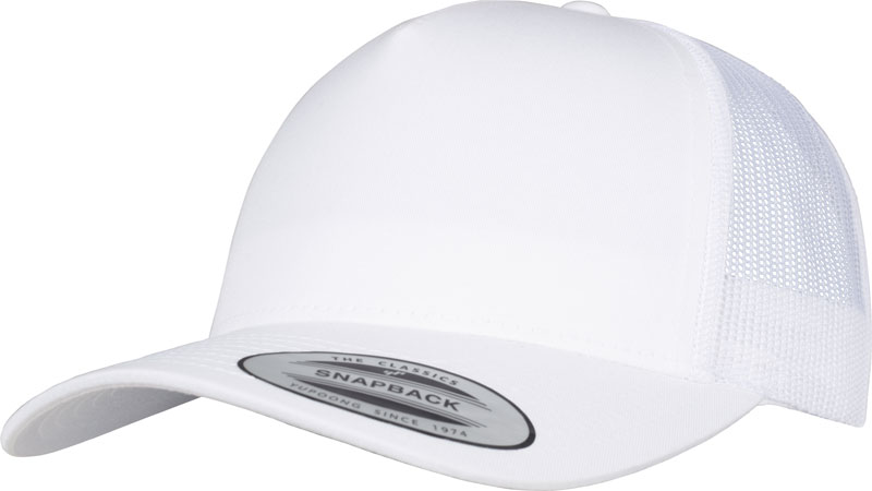 5 Panel Retro Trucker Kappe, Leicht gebogener Schirm, verstärkte Front, Rückseite aus Netz, Snap-Verschluss, nicht waschen, nicht bügeln, nicht trocknergeeignet, nicht chemisch reinigen, Material: Oberstoff 1: 60% Baumwoll-Twill, 40% Polyester, Oberstoff 2: 100% Polyester, Größe: onesize