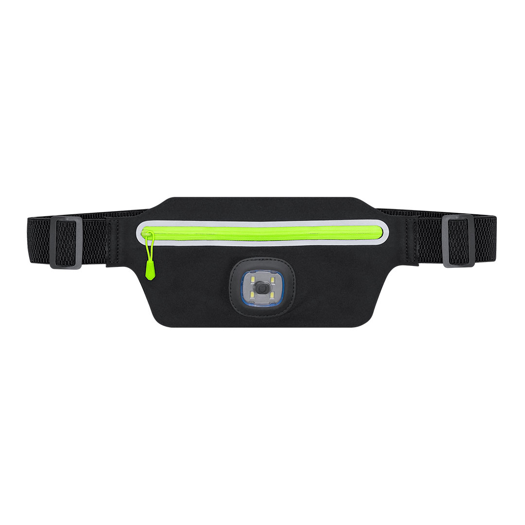 Bauchtasche aus langlebigem Polyester. Hauptfach mit reflektierendem Reißverschluss. Auf der Vorderseite befindet sich eine Taschenlampe mit 3 Lichtintensitäten. 300mAh Akku, mit Laden per USB-Kabel. Mit Schnallenverschluss und verstellbarem Gurt, speziell für Sport- und Freizeitaktivitäten entwickelt.