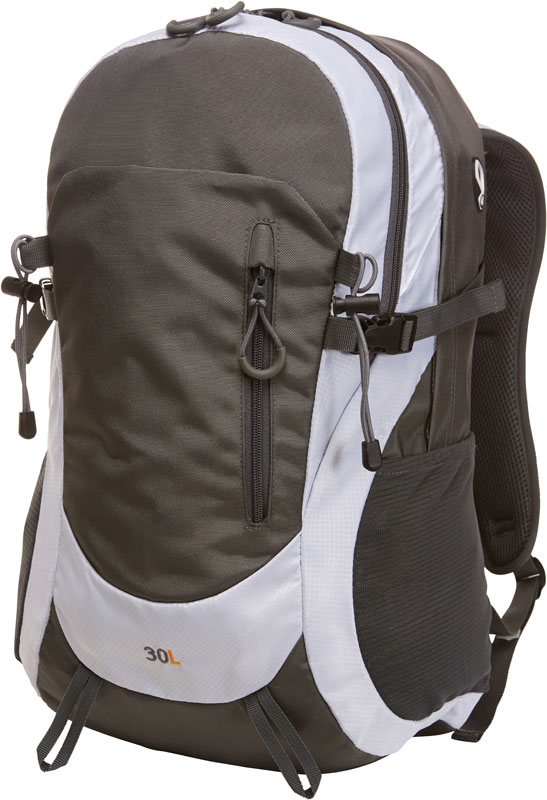 Rucksack „Trail“, Leichter funktioneller Rucksack mit gepolstertem Rücken, Beckengurt gepolstert mit Taschen mit Reißverschluss, Träger gepolstert mit oberer und unterer Längenverstellung, verstellbarer Brustgurt, 2 Seitentaschen, Bodenfach mit Regenhülle, großes Hauptfach mit flachem Einsteckfach innen und Kopfhörerausgang, seitliche Zurrgurte, Wanderstockfixierung, Fassungsvermögen: 30l, Maße: 30x49x18cm, Material: 420D Polyester, Größe: onesize