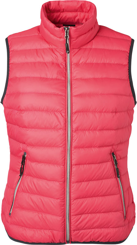 Damen Daunen Bodywarmer, Taillierter Schnitt, leichtes wind- und wasserabweisendes Material, 2 Seitentaschen mit Reißverschluss, Innenfutter und Reißverschlüsse in Kontrastfarbe, Einfassung in Kontrastfarbe an Armausschnitt und Saum, 30° waschbar, trocknergeeignet, nicht bügeln, Material: Oberstoff: 100% Polyamid, Futterstoff: 100% Polyamid, Wattierung: 90% Daunen, 10% Federn, Größen: S,M,L,XL,XXL