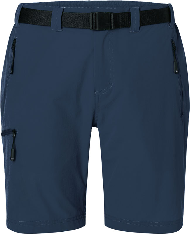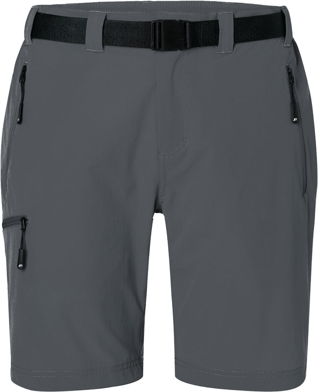 Herren Trekking Hose kurz, Wasser- und schmutzabweisend durch BIONIC-FINISH®ECO, teilelastischer Bund mit Gürtelschlaufen und Gürtel, alle Taschen mit Reißverschluss, 2 Seitentaschen, 1 Gesäßtasche, 1 Tasche am Bein, schnelltrocknend, 30° waschbar, Schonwäsche, nicht bügeln, nicht trocknergeeignet, Material: 85% Polyamid, 15% Elasthan, Größen: S,M,L,XL,XXL,3XL