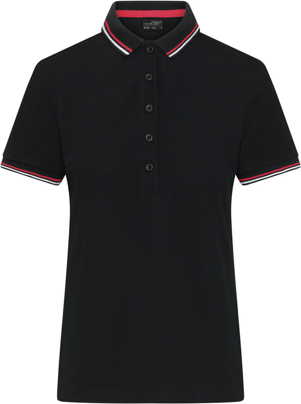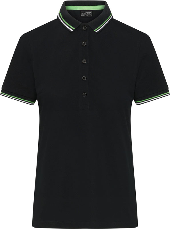 Schweres Damen Piqué Polo mit Kontraststreifen, Taillierter Schnitt, gestrickter Polokragen und Ärmelbündchen mit Streifen in Kontrastfarbe, 5er Knopfleiste mit Knöpfen Ton-in-Ton, Nackenband in Kontrastfarbe, 40° waschbar, nicht trocknergeeignet, Material: 210g/m², 100% gekämmte ringgesponnene Baumwolle, Größen: XS,S,M,L,XL,XXL