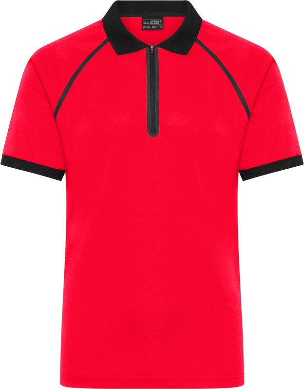 Herren Polo mit Zip, Atmungsaktiv, gestrickter Polokragen und Ärmelbündchen, Nackenband, Raglanärmel, YKK Reißverschluss, feuchtigkeitsregulierend und schnelltrocknend, 30° waschbar, nicht trocknergeeignet, Material: 170g/m², 100% Polyester, Größen: S,M,L,XL,XXL,3XL