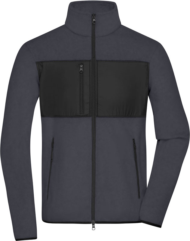 Herren Fleece Jacke, Webbesatz im Vorderteil mit Brusttasche, Stehkragen, 2-Wege Reißverschluss, YKK Reißverschlüsse, 2 Seitentaschen und 1 Brusttasche mit Reißverschluss, 2 Innentaschen, pflegeleichtes und weiches Material, 30° waschbar, Schonwäsche, nicht bügeln, nicht trocknergeeignet, Material: 280g/m², Oberstoff 1: 100% recyceltes Polyester, Fleece, Oberstoff 2: 100% Polyester, Größen: S,M,L,XL,XXL,3XL