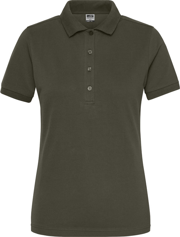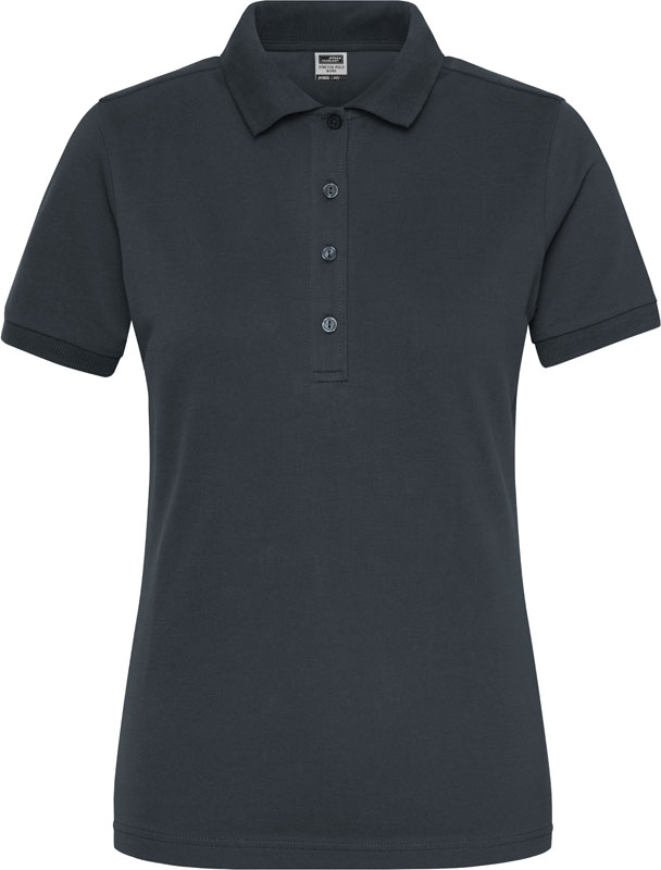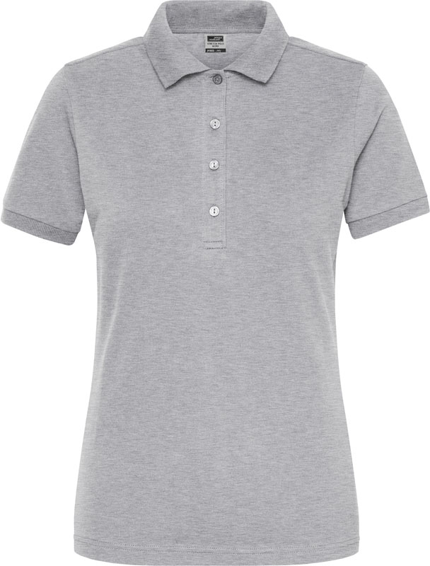 Damen Bio Workwear Stretch Polo – Solid, Leicht taillierter Schnitt, gestrickter Polokragen und Ärmelbündchen, 4er Knopfleiste mit Knöpfen Ton-in-Ton, Seitenschlitze, UV-Schutz 50+, 40° waschbar, trocknergeeignet bei niedriger Temperatur, Material: 210g/m², 94% gekämmte ringgesponnene zertifizierte Bio-Baumwolle, 6% Elasthan, grey heather: 84% gekämmte ringgesponnene zertifizierte Bio-Baumwolle, 10% Viskose, 6% Elasthan, Größen: XS,S,M,L,XL,XXL,3XL,4XL