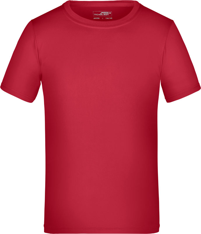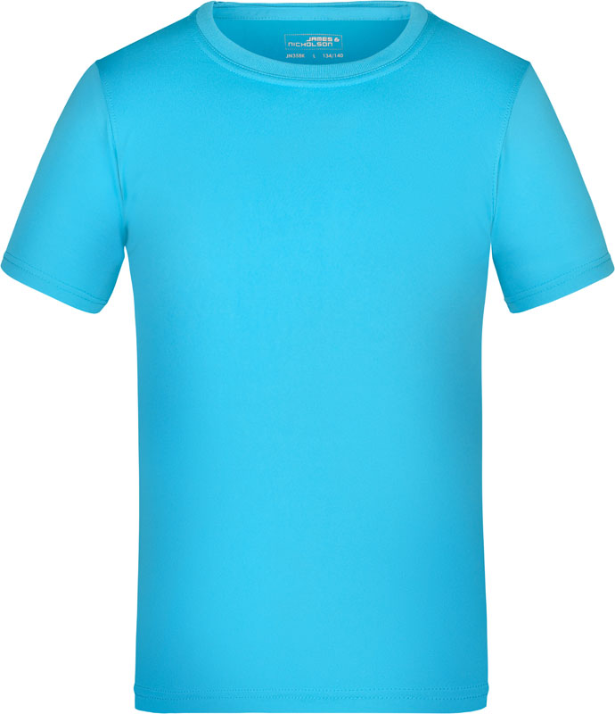 Kinder Jersey Sport Shirt, Atmungsaktiv, Hals- und Armausschnitt, Nackenband, Doppelnähte an Schultern, feuchtigkeitsregulierend, schnelltrocknend, 30° waschbar, nicht trocknergeeignet, Material: 150g/m², 100% Micropolyester, Single Jersey, Größen: M,L,XL,XXL