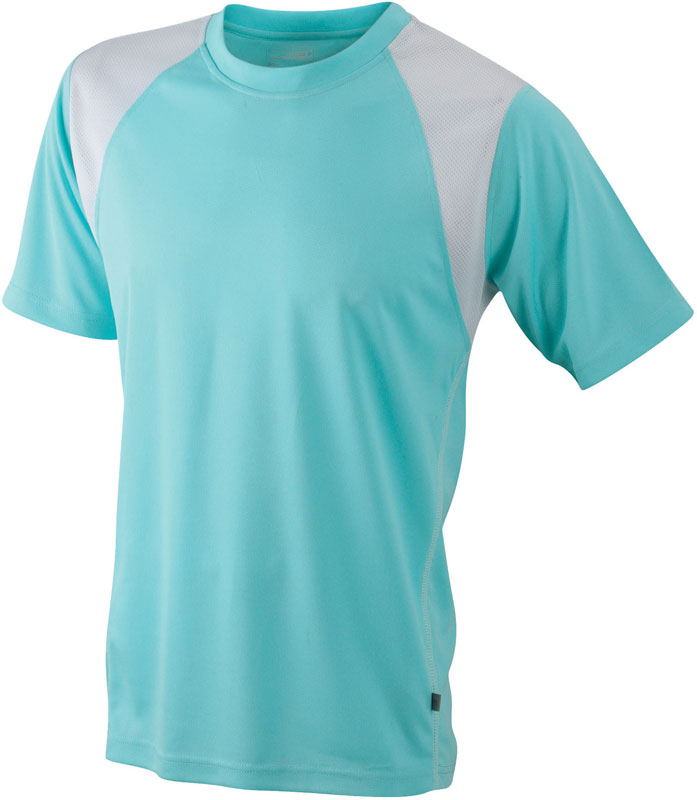 Herren Lauf Shirt, Atmungsaktiv, reibungsarme Flatlock-Nähte in Kontrastfarbe, feuchtigkeitsregulierend, schnelltrocknend, leicht und komfortabel, Reflextransfer (ohne Schutzfunktion) und Paspeln, Material: 140g/m², 100% Polyester, Größen: S,M,L,XL,XXL,3XL