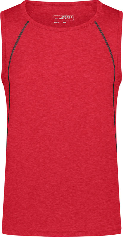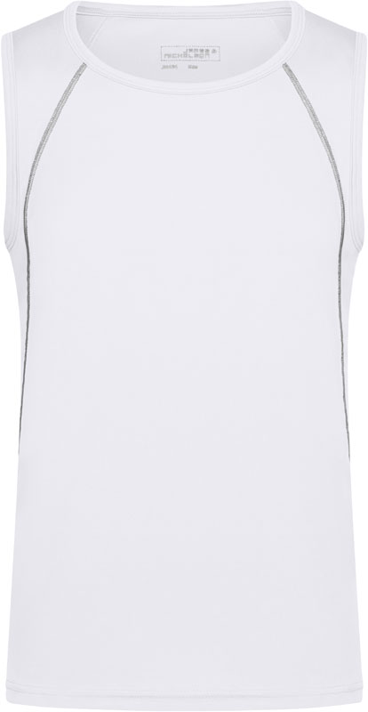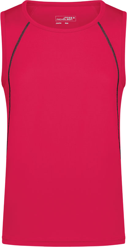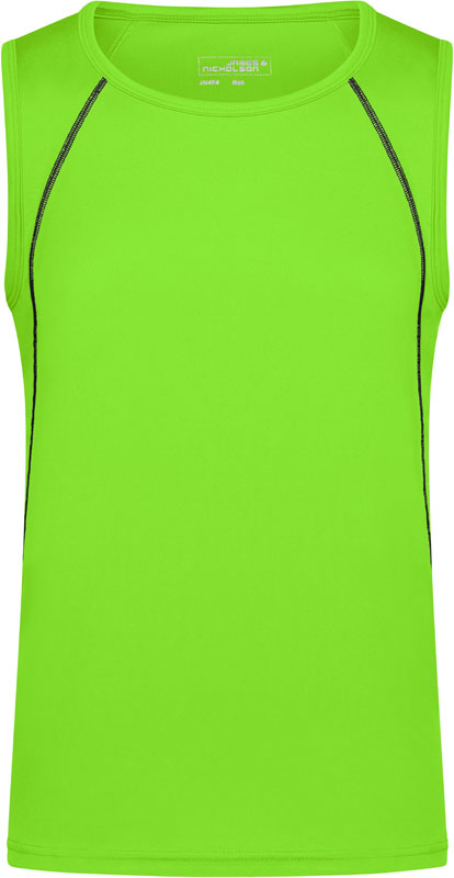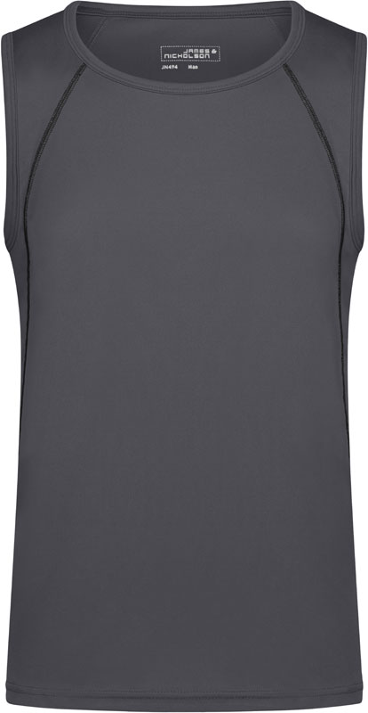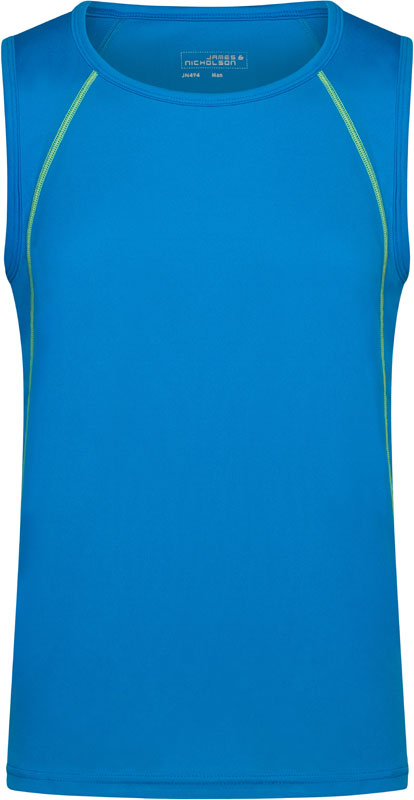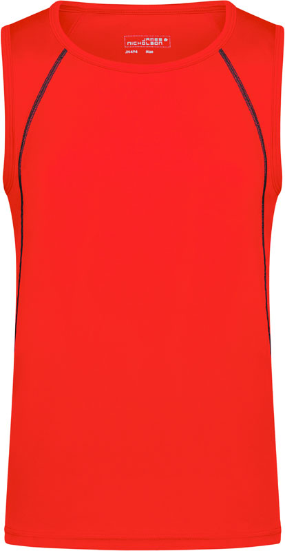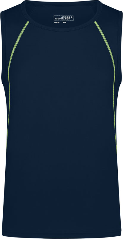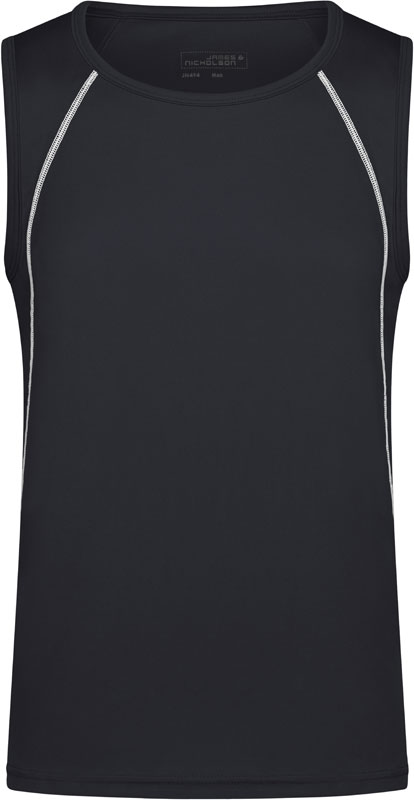 Herren Funktionsshirt ärmellos, Atmungsaktiv, Flatlock-Nähte in Kontrastfarbe im Vorder- und Rückenteil, feuchtigkeitsregulierend, schnelltrocknend, leicht und komfortabel, 30° waschbar, nicht trocknergeeignet, Material: 130g/m², 100% Polyester, Größen: S,M,L,XL,XXL