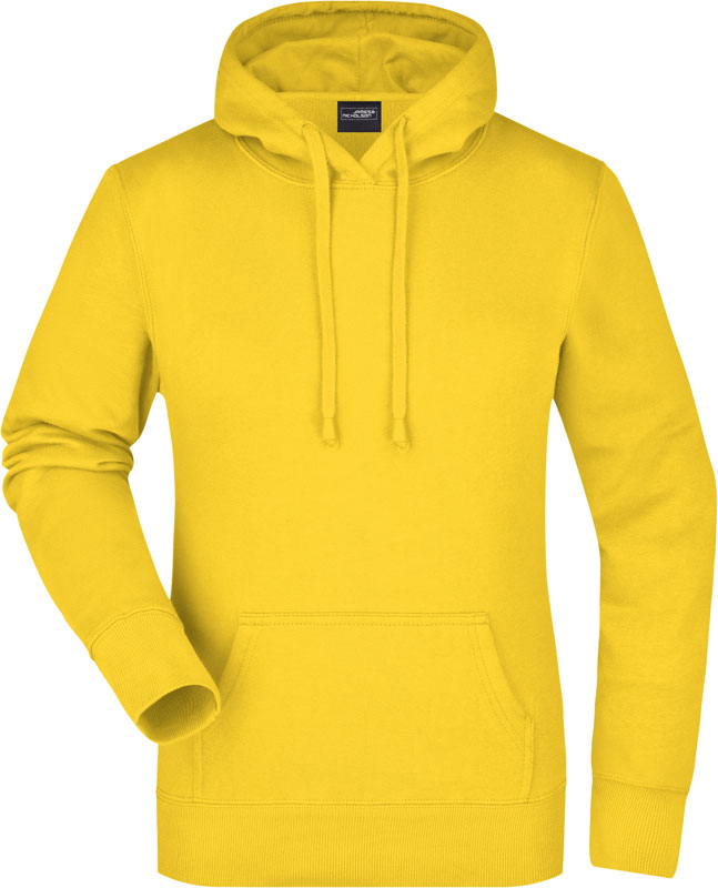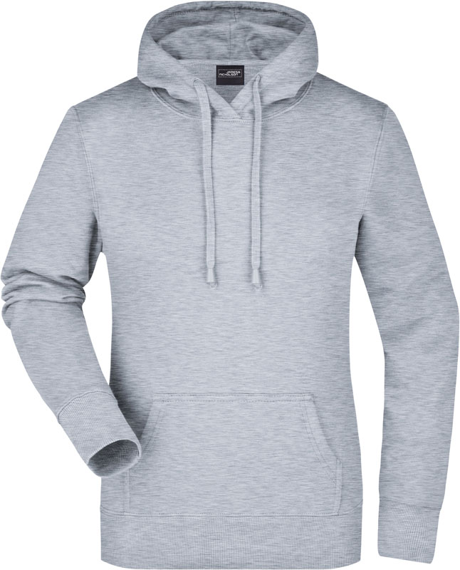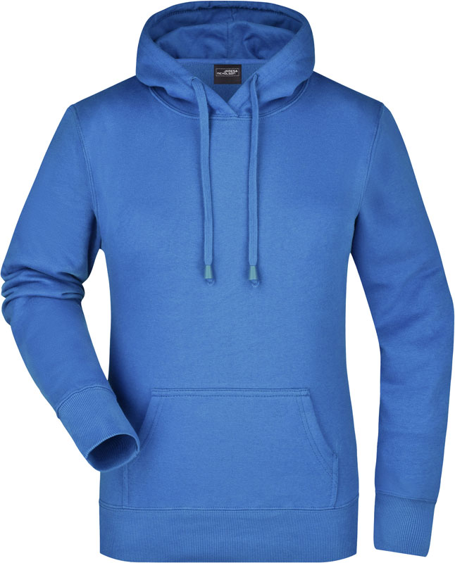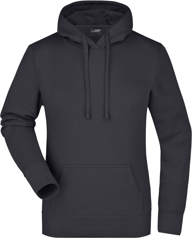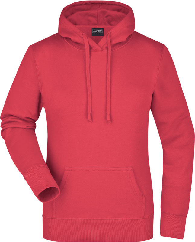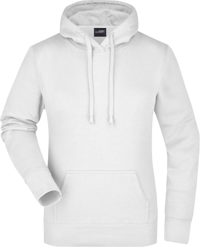 Damen Kapuzen Sweater, Leicht taillierter Schnitt, 2-lagige Kapuze mit Kordelzug, Nackenband, Bündchen mit Elasthan, Kängurutasche, Doppelnähte garantieren längere Haltbarkeit, 3-fädige Sweat-Qualität, innen angeraut, 60° waschbar, nicht trocknergeeignet, Material: 300g/m², 80% Baumwolle, 20% Polyester, Größen: S,M,L,XL,XXL