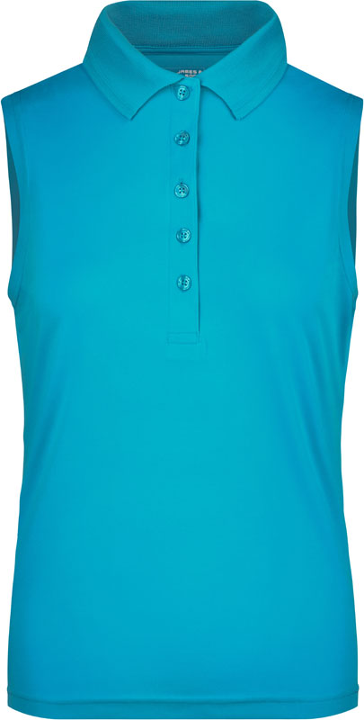 Damen Polo ärmellos, Leicht taillierter Schnitt, atmungsaktiv, flacher Strickkragen, Knöpfe Ton-in-Ton, angenehmer Tragekomfort, feuchtigkeitsregulierend und schnelltrocknend, 30° waschbar, nicht trocknergeeignet, Material: 155g/m², 100% Polyester, Größen: S,M,L,XL,XXL
