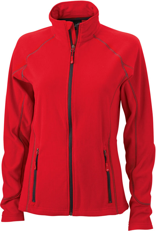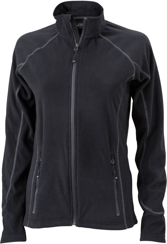 Damen Struktur Fleece Jacke, Taillierter Schnitt, angenehm weiche Qualität, Außen: leicht strukturiert, Innen: glatt, Stehkragen, unterlegter Reißverschluss mit Kinnschutz, 2 Seitentaschen mit Reißverschluss, Flatlock-Nähte in Kontrastfarbe, 30° waschbar, Schonwäsche, nicht bügeln, nicht trocknergeeignet, Material: 190g/m², 100% Polyester, Größen: S,M,L,XL,XXL