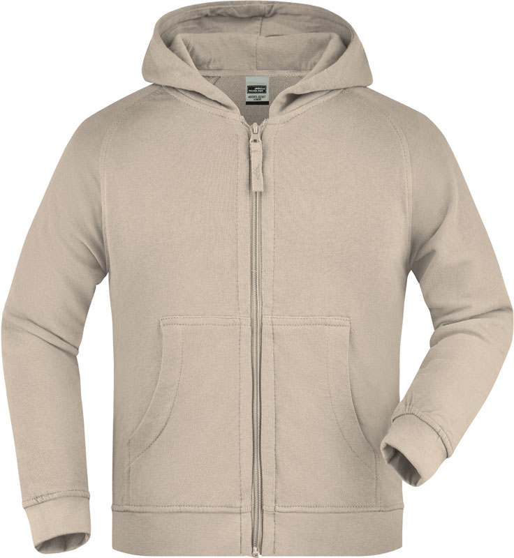 Kinder Kapuzenjacke, 2-lagige Kapuze mit Jerseyfutter ohne Kordelzug, Nackenband, Raglanärmel, Bündchen mit Elasthan, 2 Seitentaschen, Doppelnähte an Ärmeln und Bund, 40° waschbar, nicht trocknergeeignet, Material: 300g/m², 100% gekämmte ringgesponnene Baumwolle, enzymgewaschen, French Terry (innen nicht angeraut), Größen: XS,S,M,L,XL,XXL