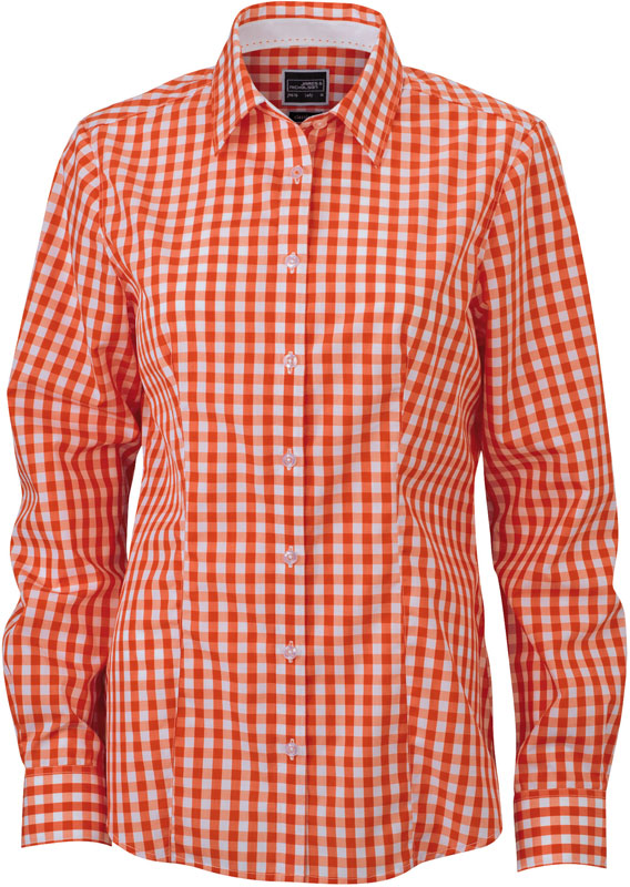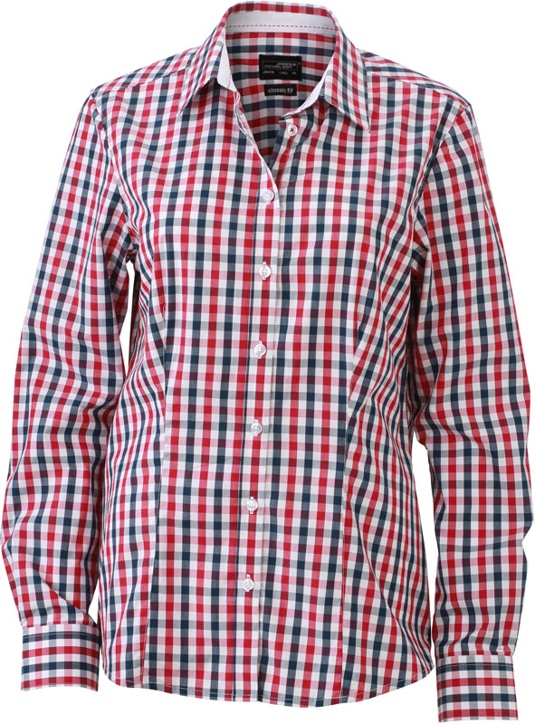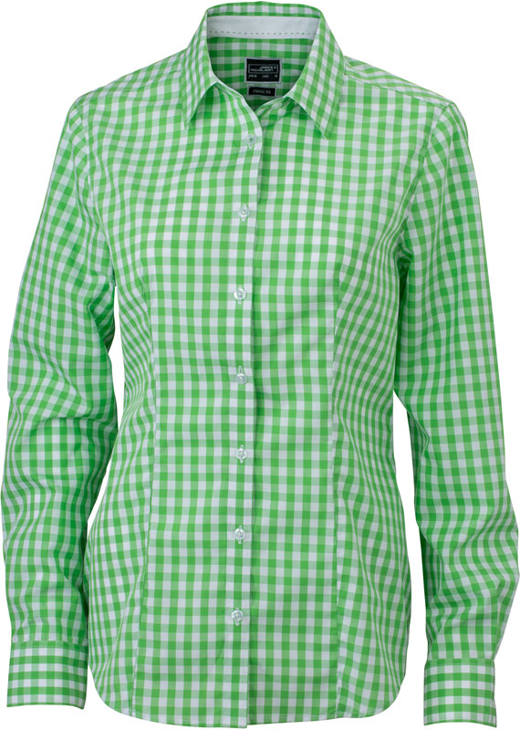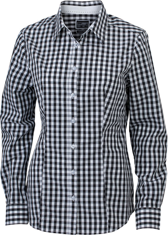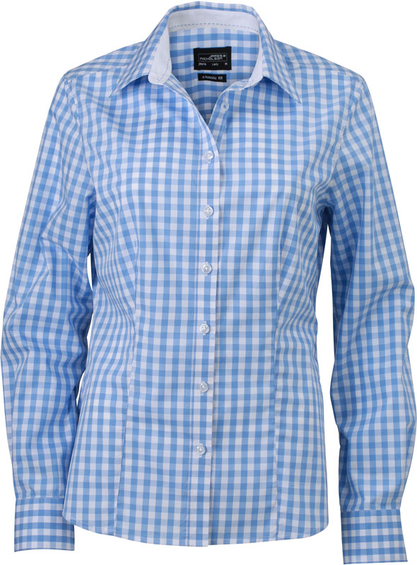 Popeline Karo Bluse langarm, Taillierter Schnitt, Uni-Einsätze an Kragen und Manschette, abgerundeter Saum, Easy Care, 40° waschbar, Schonwäsche, hochwertige bügelleichte Popeline Qualität, nicht trocknergeeignet, Material: 100g/m², 100% Baumwolle, Größen: XS,S,M,L,XL,XXL