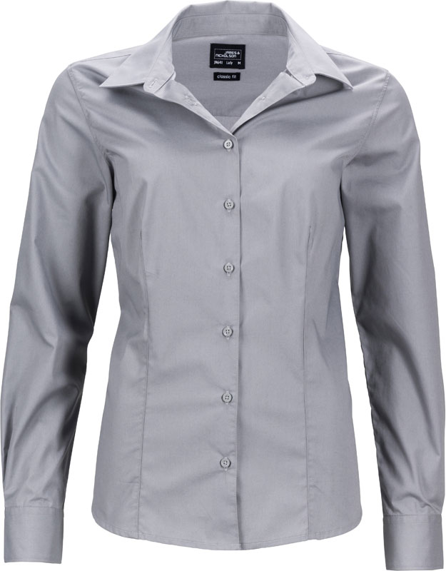 Popeline Business Bluse langarm, Taillierter femininer Schnitt, klassischer Kragen, Manschette am Ärmel, abgerundeter Saum, pflegeleichter Stoff, Easy Care, Schonwäsche, bügelleicht, 60° waschbar, nicht trocknergeeignet, Material: 105g/m², 50% Baumwolle, 50% Polyester, Größen: XS,S,M,L,XL,XXL,3XL