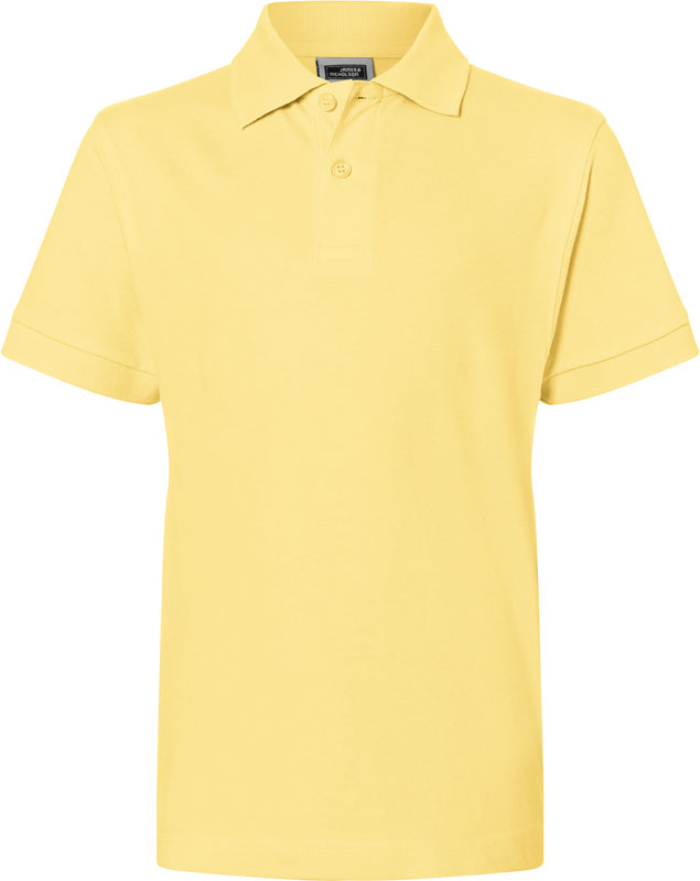 Kinder Piqué Polo, Gestrickter Kragen und Ärmelbündchen, Knöpfe Ton-in-Ton, Doppelnähte an Schultern und Armausschnitt, Seitenschlitze, sehr feines Piqué, 40° waschbar, nicht trocknergeeignet, Material: 195g/m², 100% gekämmte ringgesponnene Baumwolle, Größen: XS,S,M,L,XL,XXL