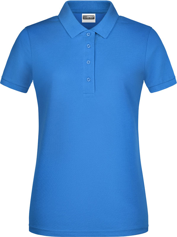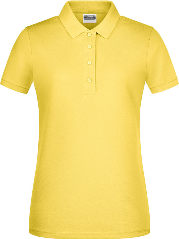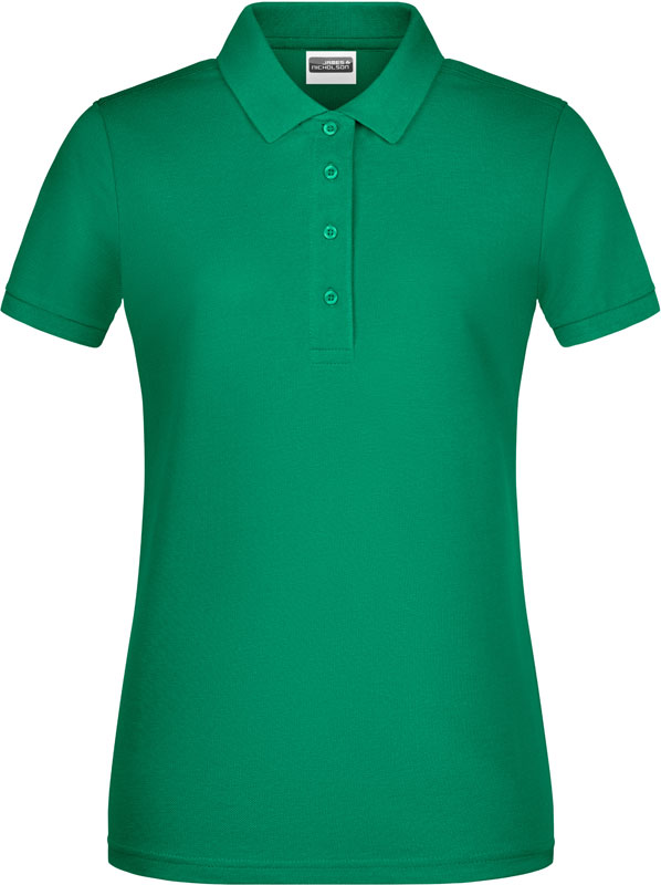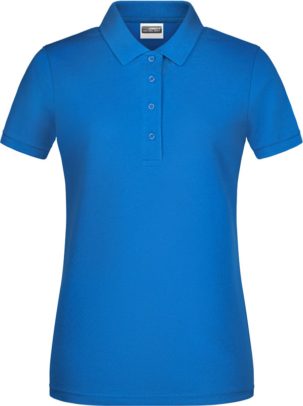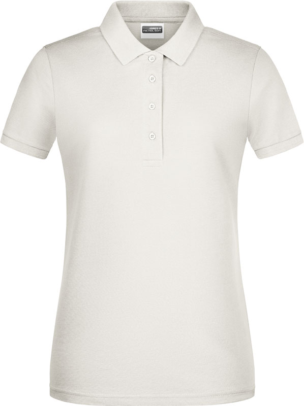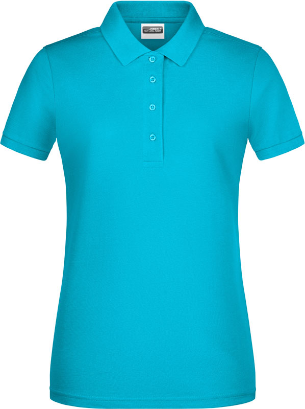 Damen Bio Piqué Polo, Taillierter Schnitt, gestrickter Polokragen und Ärmelbündchen, 4 Knöpfe Ton-in-Ton, Seitenschlitze, TearAway Label, 40° waschbar, nicht trocknergeeignet, Material: 180g/m², 100% gekämmte ringgesponnene zertifizierte Bio-Baumwolle, Größen: S,M,L,XL,XXL