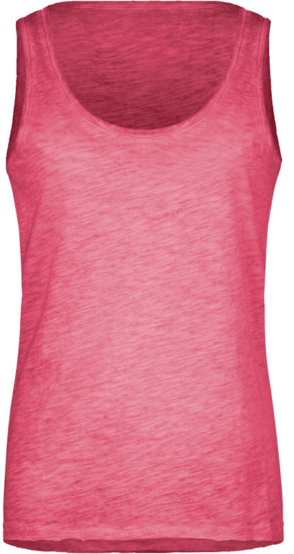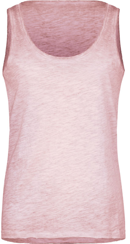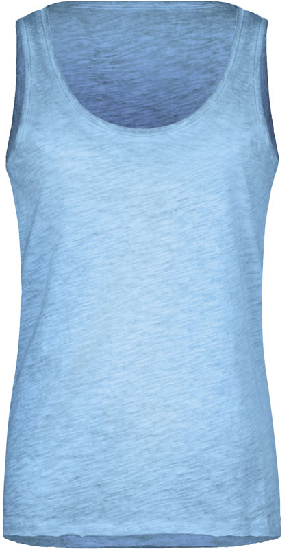 Damen Bio Vintage Tank Top, Leicht taillierter Schnitt, 2-lagiger Rollsaum, Hals- und Armausschnitt mit schmalen Bündchen, aufwendige Spray Drucktechnik, 30° waschbar, nicht trocknergeeignet, Material: 130g/m², 100% gekämmte ringgesponnene zertifizierte Bio-Baumwolle, Single Jersey aus Flammgarn, Größen: XS,S,M,L,XL,XXL