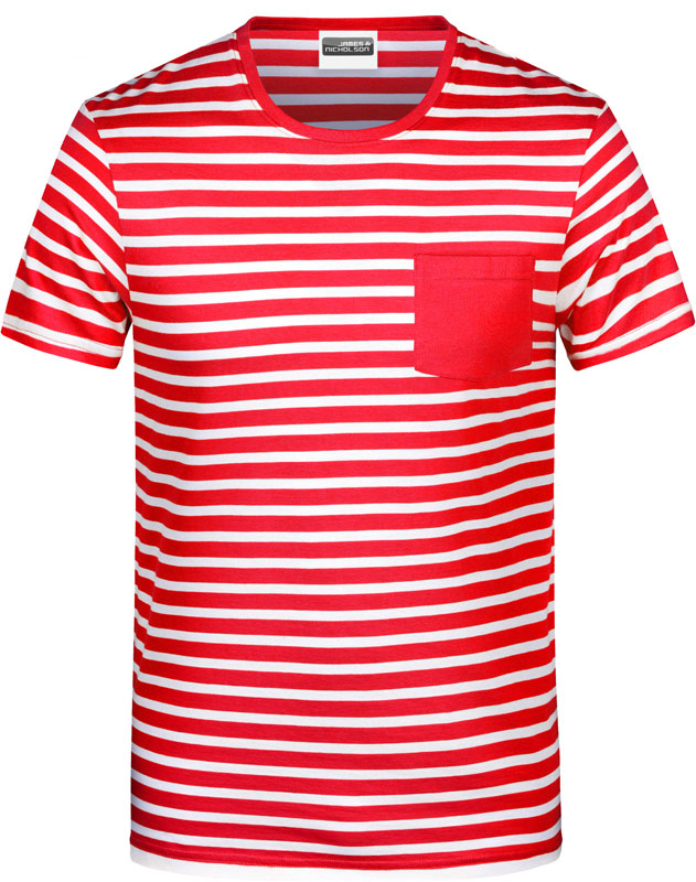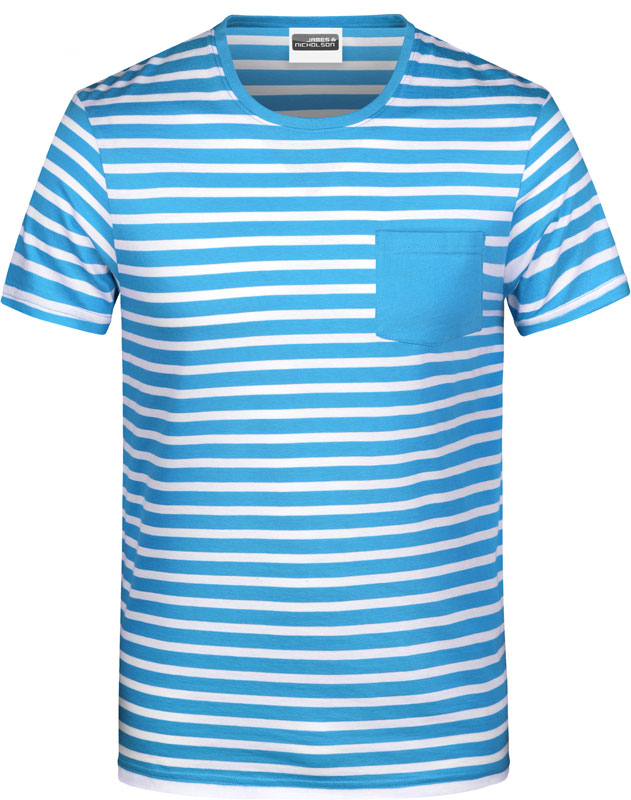 Herren T-Shirt gestreift, Rundhalsausschnitt, Bündchen mit Elasthan, Brusttasche, TearAway Label, 40° waschbar, nicht trocknergeeignet, Material: 140g/m², 100% gekämmte ringgesponnene zertifizierte Bio-Baumwolle, Single Jersey, Größen: S,M,L,XL,XXL,3XL