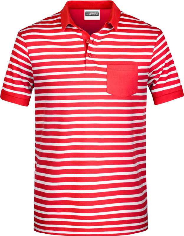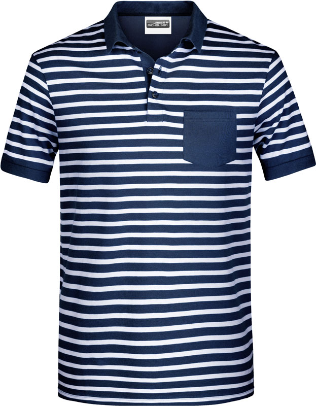 Herren Piqué Polo gestreift, Gestrickter Polokragen, Knopfleiste innen in Kontrastfarbe, Ärmelbündchen, 3 Knöpfe in Kontrastfarbe, Brusttasche, Seitenschlitze, TearAway Label, 40° waschbar, nicht trocknergeeignet, Material: 180g/m², 100% gekämmte ringgesponnene zertifizierte Bio-Baumwolle, Größen: S,M,L,XL,XXL,3XL