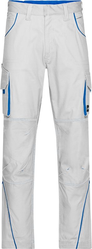 Workwear Hose – Color, Ergonomische Passform durch Elasthananteil, dehnbarer Bund mit Gürtelschlaufen, verdeckte Verarbeitung an Knöpfen und Reißverschlüssen, Schubtaschen, diverse Werkzeugtaschen, Zollstocktasche, Handytasche und Stiftefächer, reißfeste 3-fach Naht, elastische leichte Canvas-Qualität, Reflexelemente (ohne Schutzfunktion) an Vorder- und Rückseite, 60° waschbar, trocknergeeignet, in 2 Längen erhältlich: kurz 02.847S, normal 02.847M/02.847X, Material: 250g/m², 97% Baumwolle, 3% Elasthan, Größen: (62),(64),(66),(68)