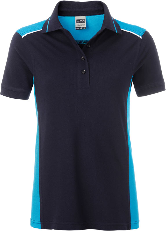 Damen Workwear Piqué Polo – Color, Leicht taillierter Schnitt, gestrickter Polokragen und Ärmelbündchen, 4-er Knopfleiste, Nackenband, Streifen in Kontrastfarbe am Kragen, Einsätze in Kontrastfarbe an Seite und Schulter, Paspel an Schulter-Vorderteil, 60° waschbar, trocknergeeignet bei niedriger Temperatur, Material: 200g/m², 50% Baumwolle, 50% Polyester, Größen: XS,S,M,L,XL,XXL,3XL,4XL