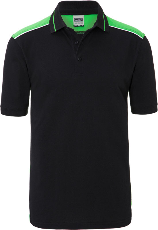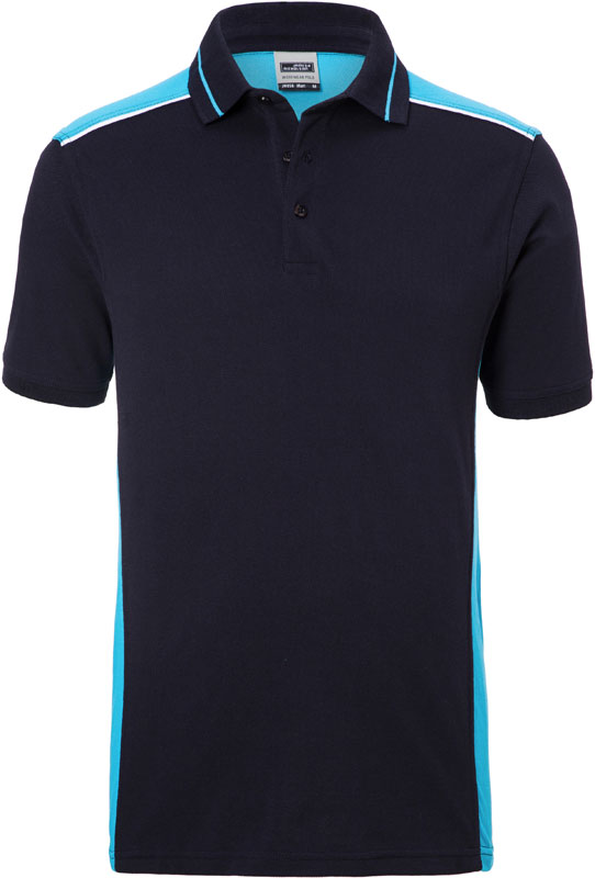 Herren Workwear Piqué Polo – Color, Gestrickter Polokragen und Ärmelbündchen, 3-er Knopfleiste, Nackenband, Streifen in Kontrastfarbe am Kragen, Einsätze in Kontrastfarbe an Seite und Schulter, Paspel an Schulter-Vorderteil, 60° waschbar, trocknergeeignet bei niedriger Temperatur, Material: 200g/m², 50% Baumwolle, 50% Polyester, Größen: XS,S,M,L,XL,XXL,3XL,4XL,5XL,6XL