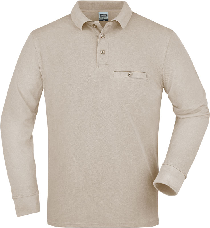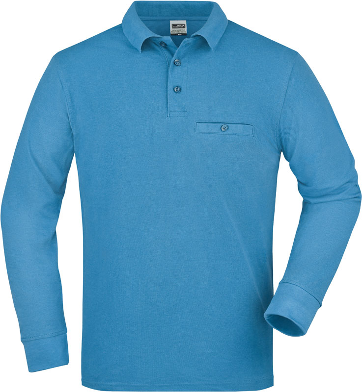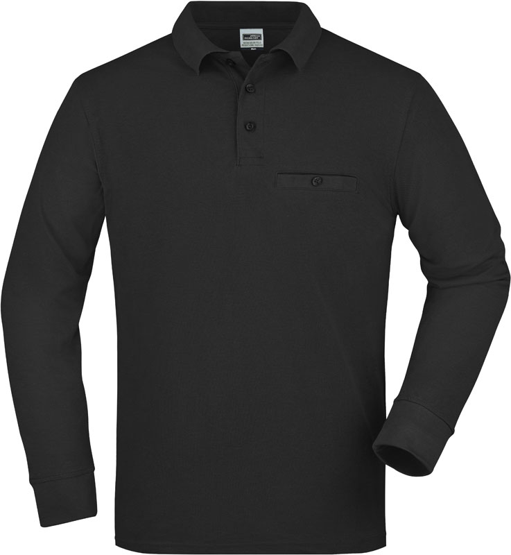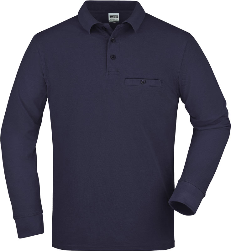 Herren Workwear Polo mit Brusttasche langarm, Gestrickter Polokragen, 3er Knopfleiste, Nackenband, loser Nackenspiegel für Kennzeichnung, Ärmelbündchen mit Elasthan, Brusttasche mit Patte und Knopf, loser Taschenbeutel zur einfachen Veredelung, 60° waschbar, trocknergeeignet bei niedriger Temperatur, Material: 200g/m², 50% Baumwolle, 50% Polyester, Größen: XS,S,M,L,XL,XXL,3XL,4XL,5XL,6XL
