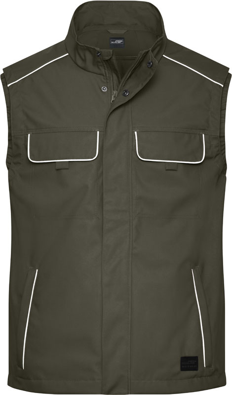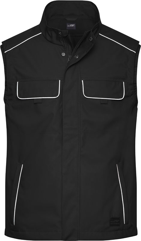 Workwear Softshell Light Gilet – Solid, Wind- und wasserabweisend (2.000mm Wassersäule), atmungsaktiv und wasserdampfdurchlässig (2.000g/m² in 24h), Stehkragen, elastischer Abschluss am Armausschnitt, durchgehend unterlegter Reißverschluss mit Windschutzblende und Kinnschutz, YKK Reißverschlüsse, Knöpfe und Reißverschlüsse verdeckt verarbeitet, Seitentaschen und Innentasche mit Reißverschluss, Brusttasche mit losem Taschenbeutel zur einfachen Veredelung, diverse Innentaschen, länger geschnittener Rücken, robustes und strapazierfähiges Softshellmaterial, Reflexelemente (ohne Schutzfunktion) an Taschen, Schulter und Rückenteil, 30° waschbar, nicht bügeln, nicht trocknergeeignet, Material: 250g/m², 100% Polyester, Innenseite: Interlock, Größen: XS,S,M,L,XL,XXL,3XL,4XL,5XL,6XL