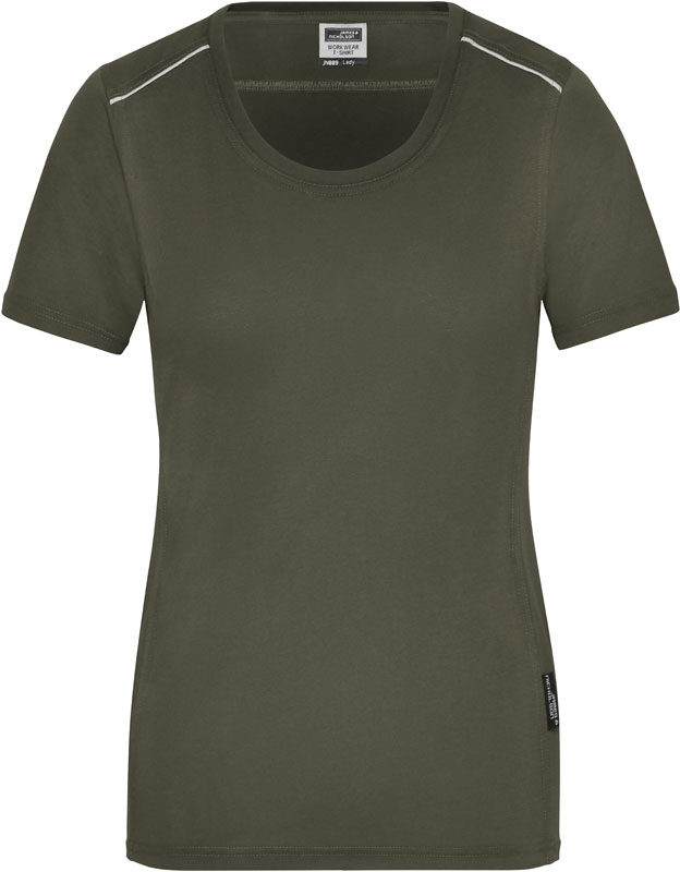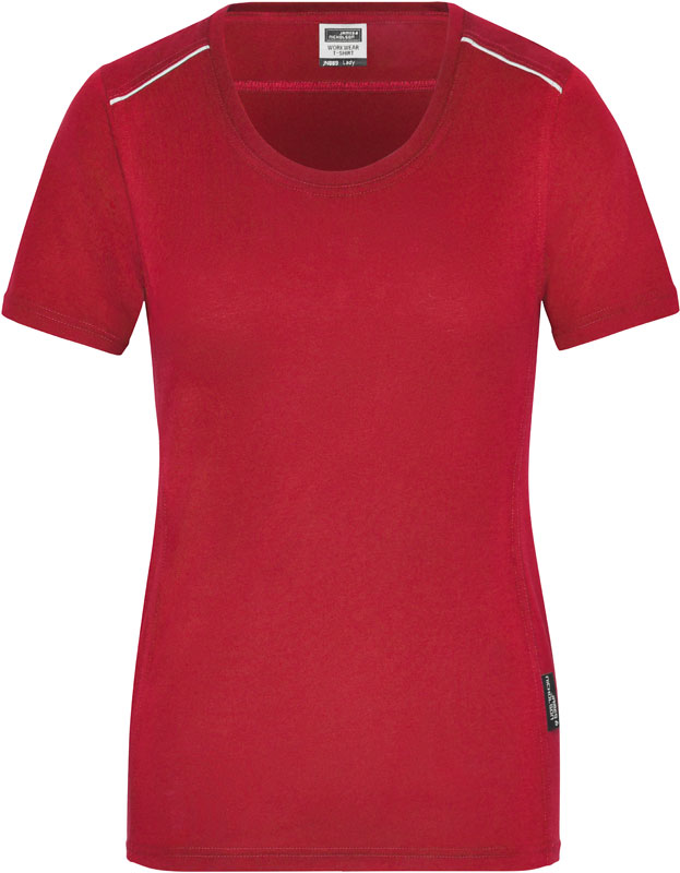 Damen Workwear T-Shirt – Solid, Leicht taillierter Schnitt, Nackenband, Bündchen am Hals mit Elasthan, Paspel in Kontrastfarbe an Vorder- und Rückenteil, UV-Schutz 50+, 60° waschbar, trocknergeeignet bei niedriger Temperatur, Material: 160g/m², 50% gekämmte ringgesponnene Bio-Baumwolle, 50% Polyester, Größen: XS,S,M,L,XL,XXL,3XL,4XL