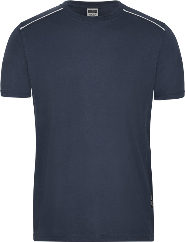Herren Workwear T-Shirt – Solid, Nackenband, Bündchen am Hals mit Elasthan, Paspel in Kontrastfarbe an Vorder- und Rückenteil, UV-Schutz 50+, 60° waschbar, trocknergeeignet bei niedriger Temperatur, Material: 160g/m², 50% gekämmte ringgesponnene Bio-Baumwolle, 50% Polyester, Größen: XS,S,M,L,XL,XXL,3XL,4XL,5XL,6XL
